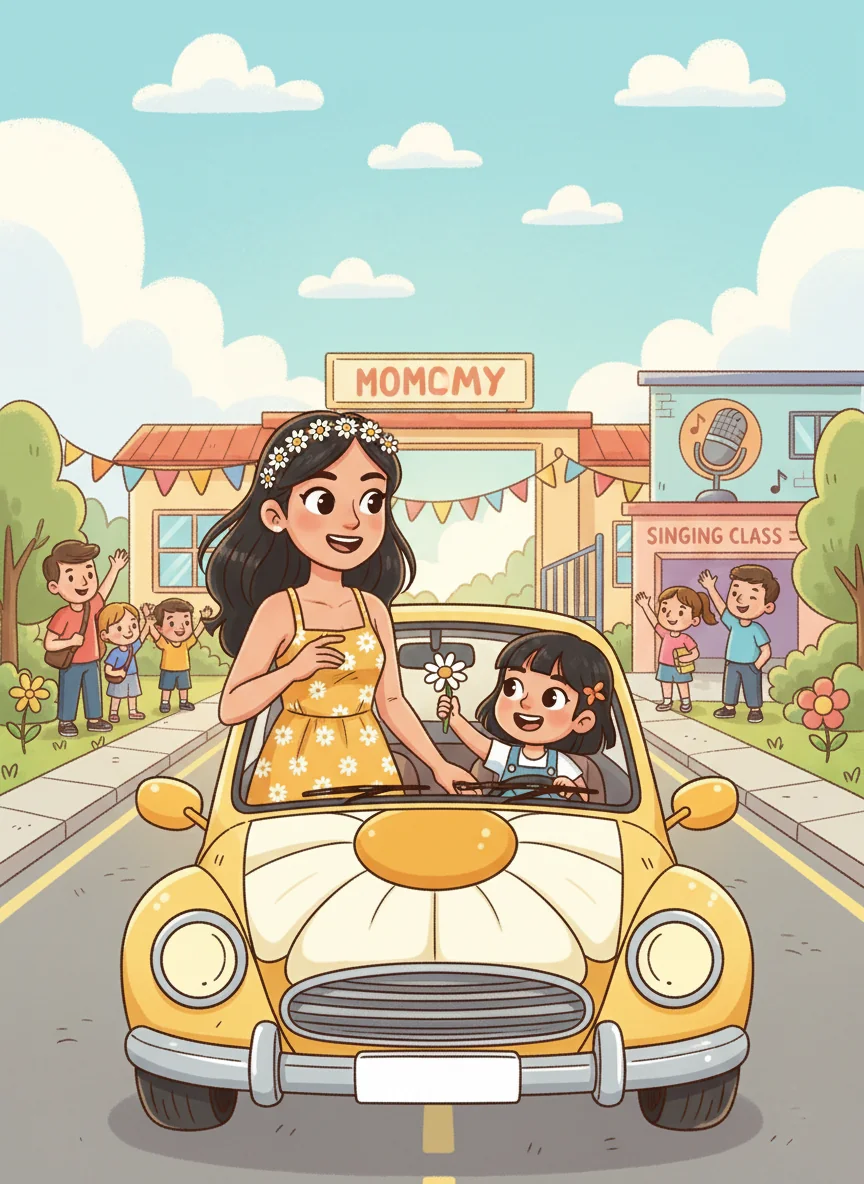 Alula's sad face slowly brightened. "Really? We can go sing?" she asked, a little spark returning to her eyes. Mommy nodded, promising a fun adventure.