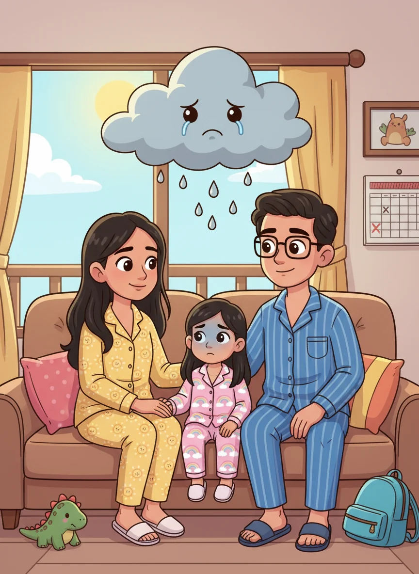 "Daddy and I both have to work today, my love," Mommy explained, her voice soft. Alula felt a big, sad cloud float over her head, thinking about missing school.