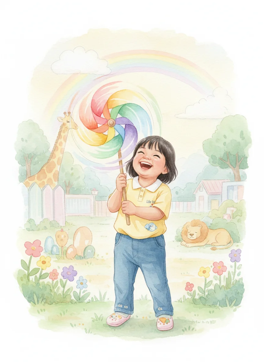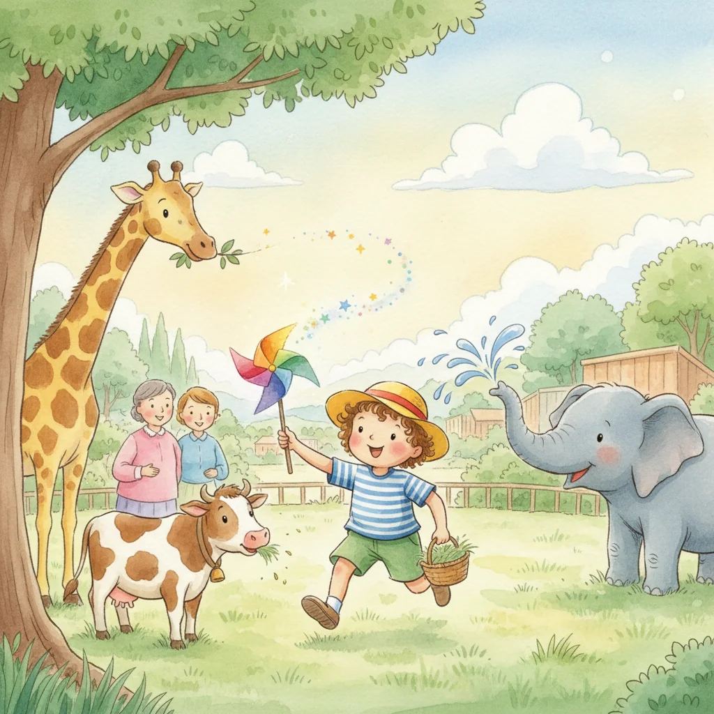 WHOOSH! The rainbow pinwheel whirled and twirled! Eil laughed with joy, realizing that believing in herself and trying again made anything possible. It was the best zoo day ever!