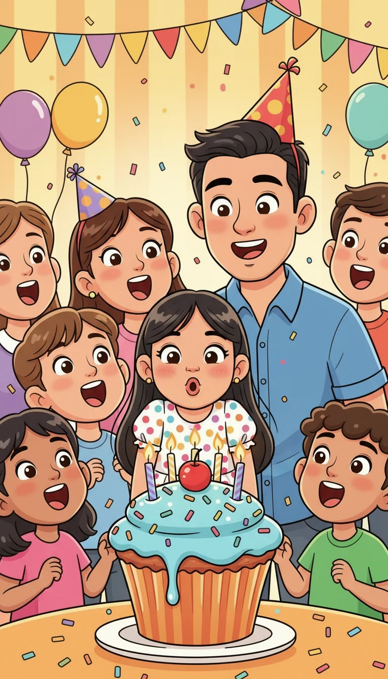 Rona blew out her candles on a giant cupcake, beaming with joy. Everyone sang "Happy Birthday" loudly. Dad smiled, knowing that by believing in themselves, he and Rona had made her sixth birthday truly unforgettable.