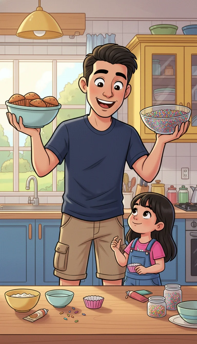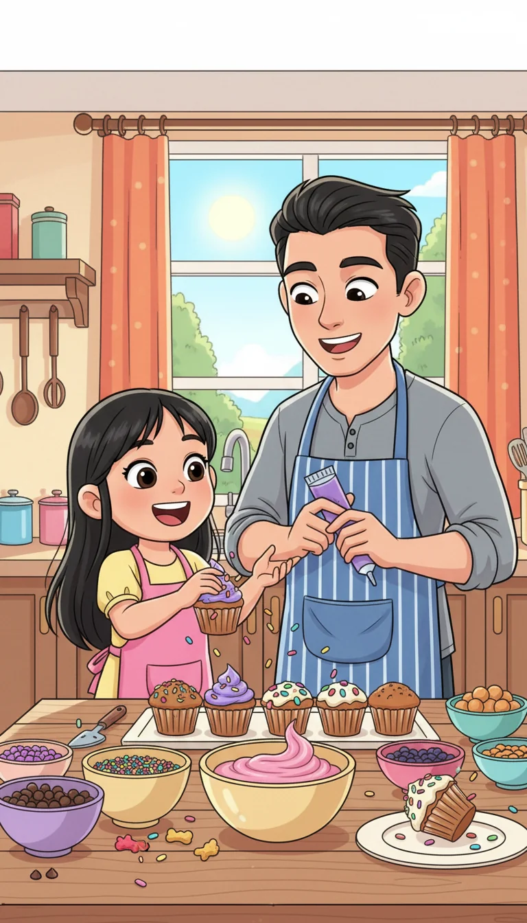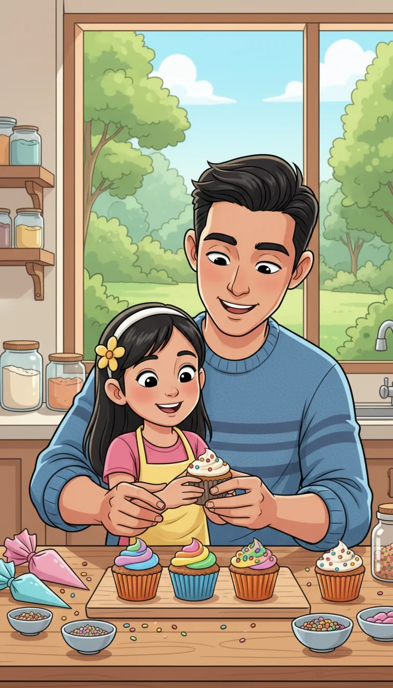 "We have plain cupcakes and lots of sprinkles!" Dad suggested, his eyes brightening. "What if we decorate them ourselves?" Rona looked up, a tiny spark returning to her eyes. "Can we really do it, Papa?" she asked.